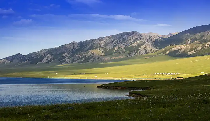 乌伦古湖又名布伦托海、大海子,湖水清澈湛蓝,与天空相接,宛如一块巨大的蓝宝石镶嵌在大地上。湖中有许多鱼类,五道黑、红鱼等在这里自由自在地游动。我们在湖边漫步,感受着微风的吹拂,聆听着湖水的拍打声,身心都得到了极大的放松。