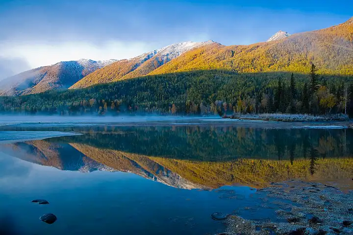 清晨,火车准点抵达北屯,迎接我们的是清新的空气和明媚的阳光。换乘大巴前往喀纳斯,一路上,戈壁渐渐变成了草场,牛羊在远处悠闲地吃草。进入喀纳斯森林公园,仿佛走进了一幅立体的油画 —— 驼颈湾的水湾曲折如驼颈,花楸谷的树木五彩斑斓,白桦林的树干笔直挺拔,阳光透过树叶洒在地上,形成斑驳的光影。