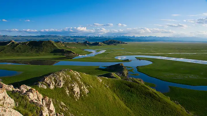 抵达巴音布鲁克草原,这里是中国第二大草原,四周为雪山环抱,海拔约 2500 米,面积 23835 平方公里。草原地势平坦,水草丰盛,是典型的禾草草甸草原。我们来到天鹅湖,这里是天鹅的栖息地,湖面上,天鹅优雅地游弋,与周边的雪山、草原构成了一幅和谐的画面。"九曲十八弯" 的开都河在草原上蜿蜒流淌,夕阳西下时,河面上会出现九个太阳的倒影,可惜我们来得早,没能看到这一奇观,但眼前的景色已经足够让我们陶醉。